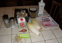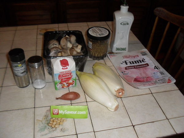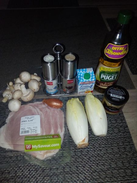 Cette recette change de la fameuse endive à la béchamel. La moutarde à l'ancienne relève le goût de l'endive et les champignons s'associent bien à l'ensemble.