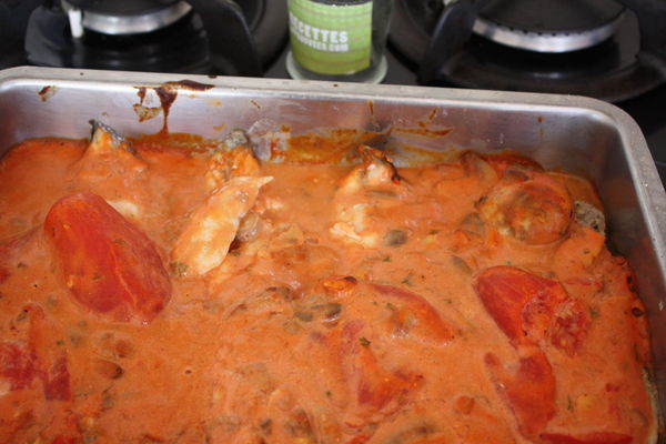 La crème fraîche adoucit le côté acide de la sauce tomates et le tout avec les champignons donne un bon goût au poisson, le seul bémol c'est que la quantité de sauce est beaucoup trop importante même si on mange du riz.