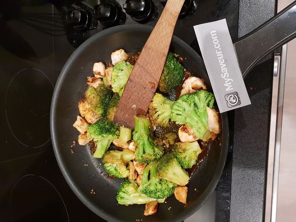 La sauce soja donne un bon goût aux brocolis et à la viande.