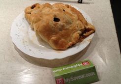 Couper en deux votre pâte feuilletée. Mettre au centre un peu d'oignon sur chaque pâte feuilletée. Poser votre viande au centre et mettre le reste d'oignons. Ajouter les pruneaux coupés en morceaux. Fermer la pâte feuilletée.