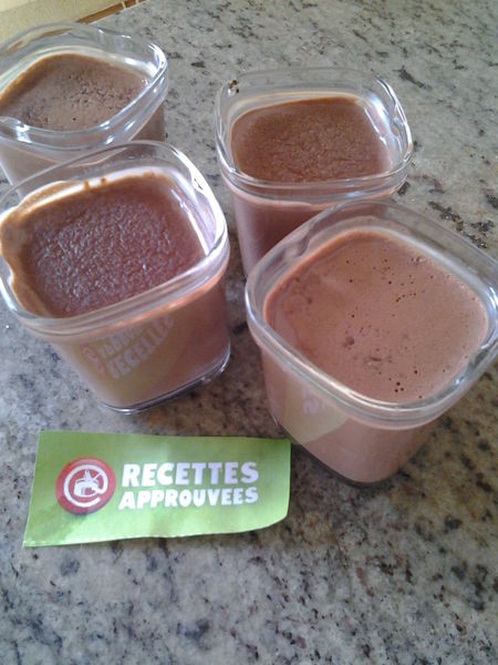 C'était très bon en goût, bien chocolaté et pas trop sucré, mais la texture n'était pas assez dure, au fond de la verrine c'était limite liquide (ma fille a pu boire le fond).