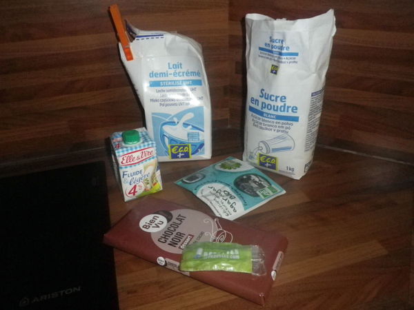 La crème est bonne mais trop chocolatée à mon goût. La prochaine fois, j'essaierai avec seulement 60g de chocolat noir à 64% de cacao.