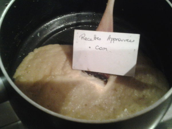 Mettre sur feu doux et remuez sans cesse avec une cuillère en bois.