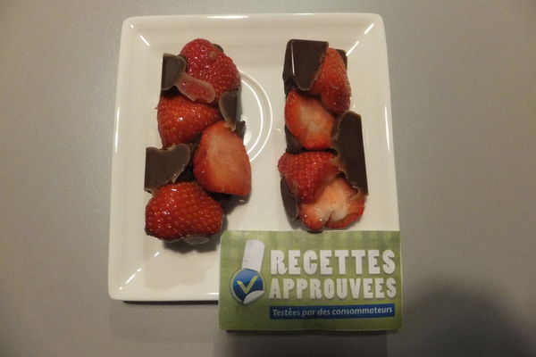 Au final, les fraises ne sont pas présentables. Le chocolat au lait est un peu écoeurant. Recette à améliorer.