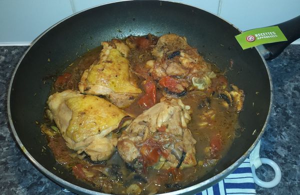 Une bonne recette de poulet, facile et rapide à préparer. De bonnes saveurs et du goût. Toutefois, manque de précisions pour la découpe des tomates, la quantité des champignons et le dosage du thym et de l'huile. La sauce est aussi un peu trop liquide, servi avec du riz.