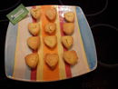 J'ai réalisé des mini coeurs. J'ai mis un bout d'ananas mariné et recouvert de pate. Un peu trop gras à mon goût, la texture est très beurrée. Le goût est bon.