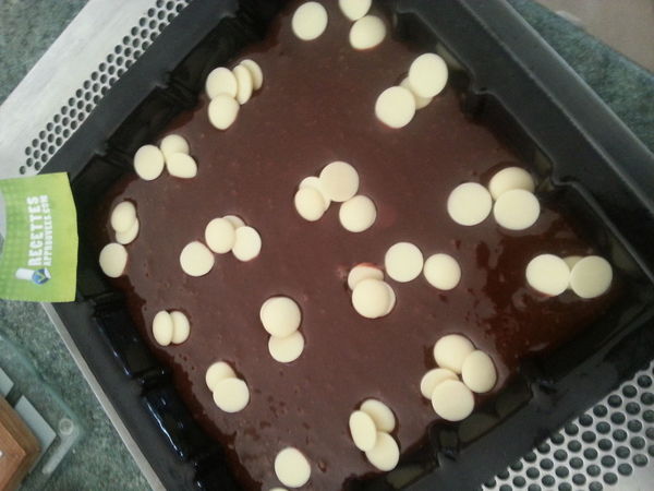 Recette simple à réaliser et rapide... mais le gâteau reste compact, peu digeste à notre goût... de plus, on ne ressent pas les pépites de chocolat blanc.