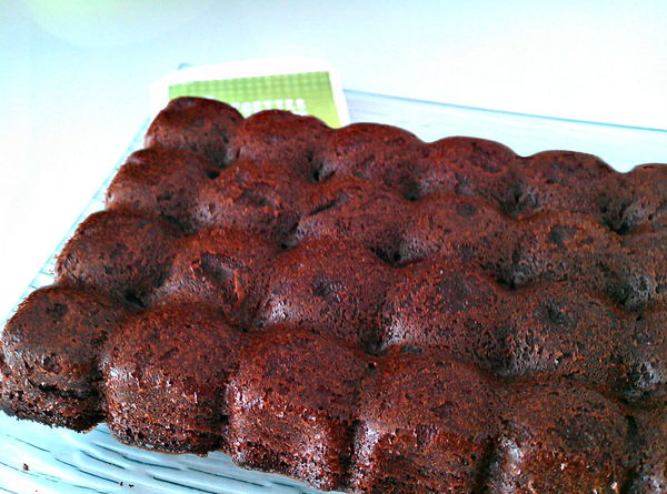 J'ai beaucoup aimé ce gâteau. Il a un bon goût en chocolat, une bonne texture et le temps de cuisson indiqué est parfait. Si je dois trouver un petit défaut, peut-être, est-il un petit peu trop sucré pour moi.. Les pépites de chocolat amènent un peu de fantaisie et ça aussi je l'ai apprécié.