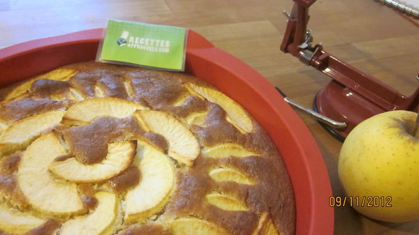 Je l'ai fait avec la poudre de noisettes, très bon, par contre mes pommes sont tombées dans la pâte, raison pour laquelle on ne les voit pas. A recommencer avec de la poudre d'amandes et peut être saupoudrer légèrement de cannelle.