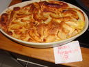 La recette n'est pas très claire, on nous dit des pommes en lamelle, ensuite, on nous parle de quartier. Je les avais déjà coupé en lamelle mais je ne pense pas que ça ai beaucoup d'importance... à moins que ce soit la raison pour laquelle mes pommes sont tombées au fond du moule.