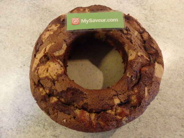 Ce gâteau est bien moelleux! Mes pâtes étaient assez liquides, du coup elles se sont un peu mélangées quand je les ai versées dans le moule et on ne voit pas trop les marbrures. Le goût de la cacahuète est assez discret, dommage.