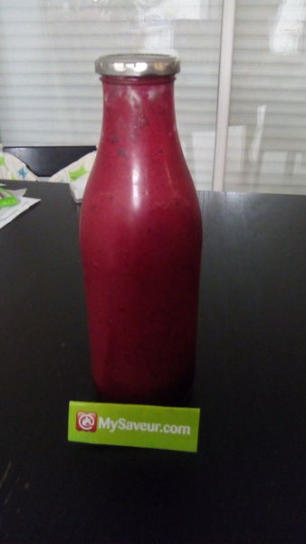 Nous avons adoré ce gaspacho de betterave, il n' est ni trop épais ni trop liquide, ce dont j'avais un peu peur avec le concombre et la tomate qui ont du jus. La prochaine fois je mettrai un peu de sel au piment d'Espelette pour relever et je servirai avec soit une tranche de bacon ou des morceaux de feta.