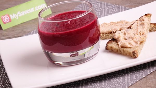 Super bon, on ne sent pas du tout le goût terreux de la betterave. Bon dosage avec le concombre et la tomate.