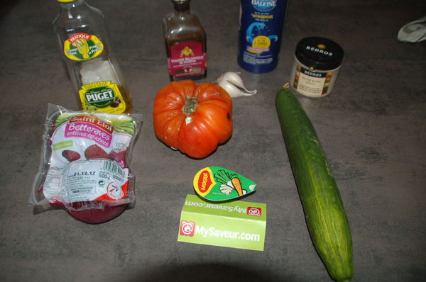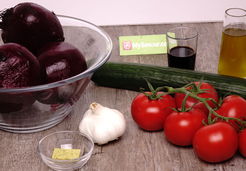 Très bon gaspacho, grâce à la présence des tomates et du concombre, on ne retrouve pas un goût trop fort de la betterave. Je trouve qu'il manque des herbes dans cette recette.