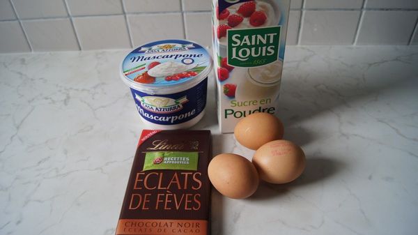 Bonne glace mais pas assez forte en chocolat. J'en referai avec 2 plaquettes pour cette même quantité de mascarpone, les éclats de fève sont un plus. Merci pour cette recette !