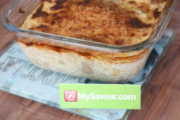 Verser l'appareil dans le plat en étalant sur toute la surface. Mettre le fromage râpé sur le dessus.