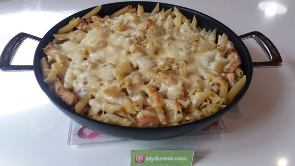Bon gratin de pâtes. Bonne sauce et bien épicée. Repas complet facile à faire.