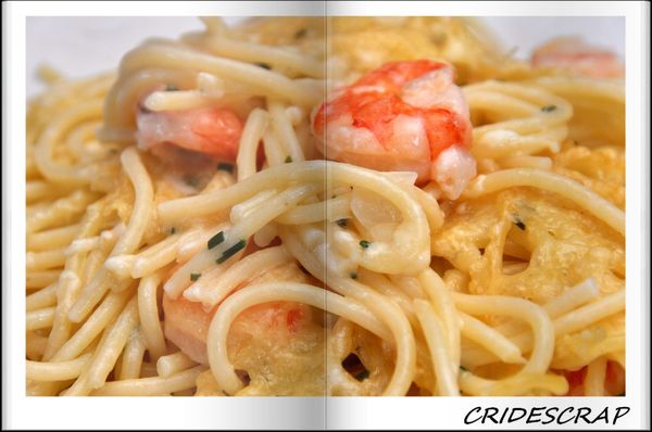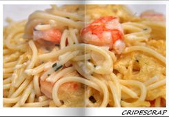 Nous avons mixer les scampis (les enfants étant refractaires à tous les poissons et crustacés...) Verdict...il n'est pas resté un spaguetti...