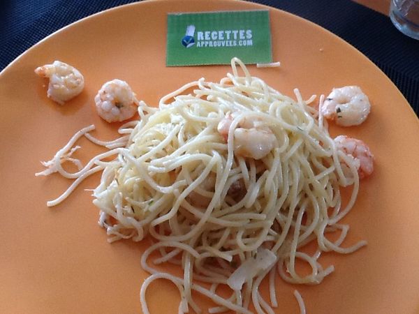 Pâtes aux crevettes très simples et rapides à faire. C'est bon mais il manque un peu de sauce.