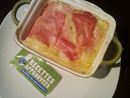Je n'avais pas lu qu'il fallait remettre du jambon par dessus, du coup je n'avais plus assez de jambon, car avec les 6 tranches j'ai chemisé les 6 moules... Sinon, excellente recette que l'on peut effectivement accomoder avec un jambon et un fromage, au libre choix des goûts de chacun :) Attention, il y a tout de même un risque que ce soit écoeurant, si les parts sont trop grosses.