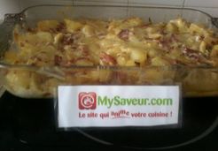 Très bon gratin, mais meilleur avec la totalité du fromage (J'ai ajouté la deuxième moitié sur le gratin le lendemain car il en restait). Bon choix pour le bacon, moins gras que les lardons.