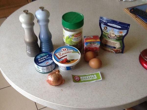 Idée originale et qui m'a fait découvrir la ricotta que je ne connaissais pas. Recette approuvée mais la prochaine fois j'apporterai quelques modifications. J'ajouterai des champignons émincés à la préparation et je mélangerai la tomate avec l'appareil au thon plutôt que de le rajouter dessus.