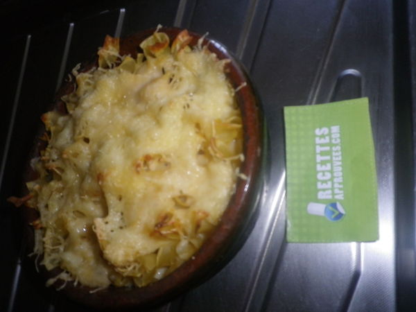 Le gratin est un peu liquide, dommage. Le mariage roquefort raisins sec est original. Le contraste du salé sucré est une réussite. Bonne recette.