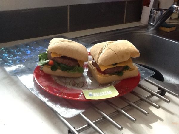 J'ai voulu passer les hamburger au four quelques instants pour faire chauffer le pain et le fromage. Ma salade s'est flétrie mais c'était tellement bon! - 13/20