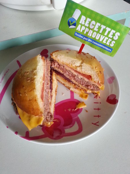 Un hamburger assez simple, bien pour les enfants, mais moi je trouve qu'il manquait vraiment au goût la tomate et les cornichons !