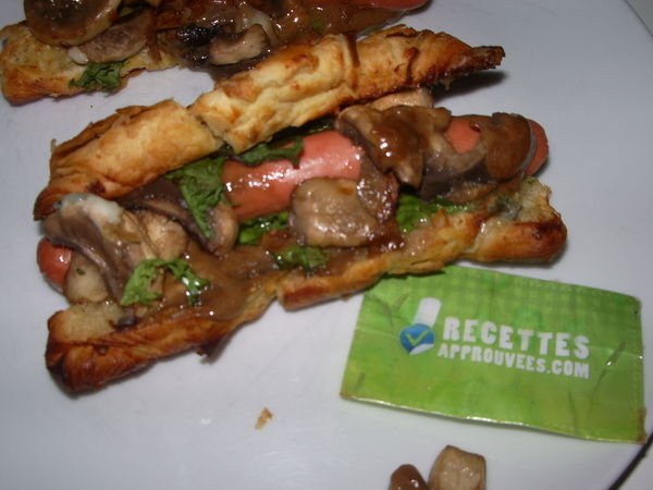 Sympa comme croissant, mais je n'ai pas aimé la sauce, (je n'aurais mis que de la moutarde) et n'aurais pas cuit les champignons pour avoir du croquant.