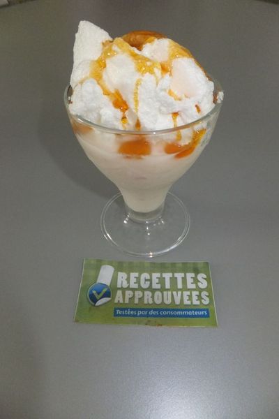 J'ai utilisé des pêches au sirop, sans rien modifier d'autre, et du coup le visuel était bluffant mes convives étaient persuadés de déguster de la crème anglaise ! - 18/20