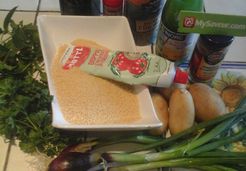 Diluer le concentré de tomate dans l'huile d'olive et verser sur la semoule.