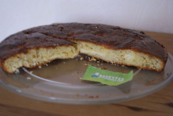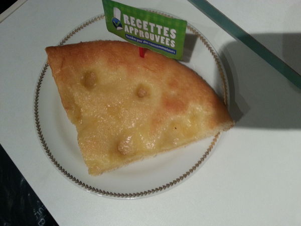 La pâte n'a pas beaucoup levé, c'est dommage car le goût est au rendez-vous. Le dessus est à la fois croustillant et moelleux.
