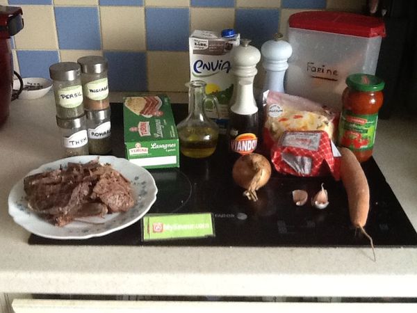 Mettre 3 càs de béchamel au fond d'un plat à lasagne. Étaler les plaques et mettre un peu de viande avec à chaque fois 3 càs de béchamel, répéter jusqu'à épuisement. Terminer par des feuilles de lasagne recouvertes de béchamel et de gruyère.