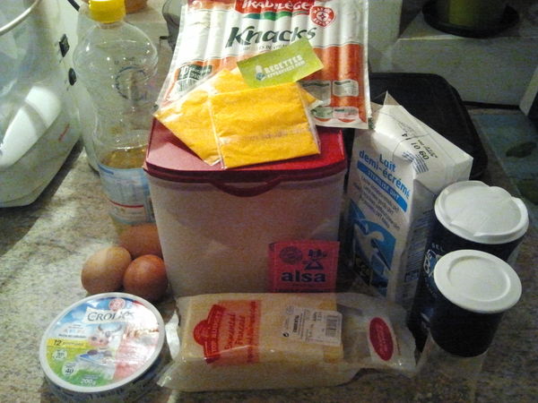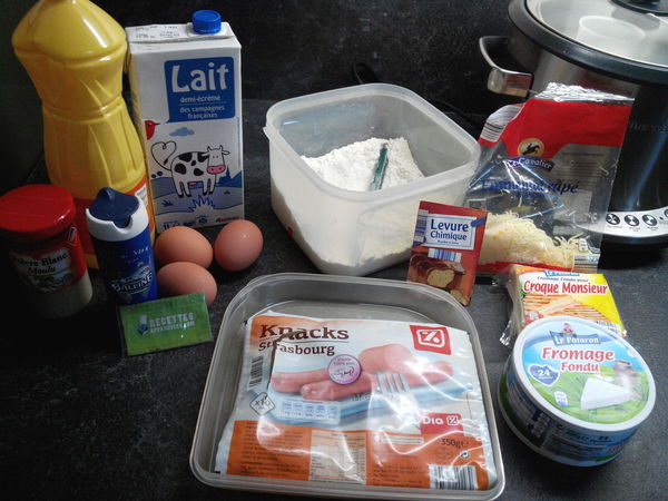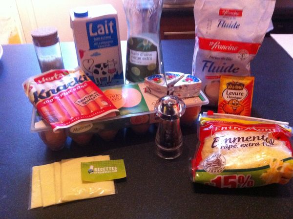 C'était bon, moelleux mais très mou, sûrement dû aux fromages. 25 min n'étaient pas assez, malgré mon plat carré. Et j'aurais préféré des lardons au lieu des saucisses. Pourquoi mettre de la Vache qui Rit plus du fromage à croque monsieur (qu'on ne retrouve plus dans la recette ?)