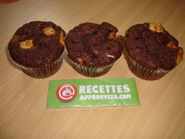 Je n'ai fait la recette qu'avec la moitié des proportions. Les muffins sont très bons et fondants. Le temps de cuisson est exact (du moins avec mon four). Le seul bémol, ils sont un peu gras pour moi. Je referai donc cette recette avec moins de beurre ou sans chocolat blanc car on n'en sent peu le goût et il amène plus de graisse.