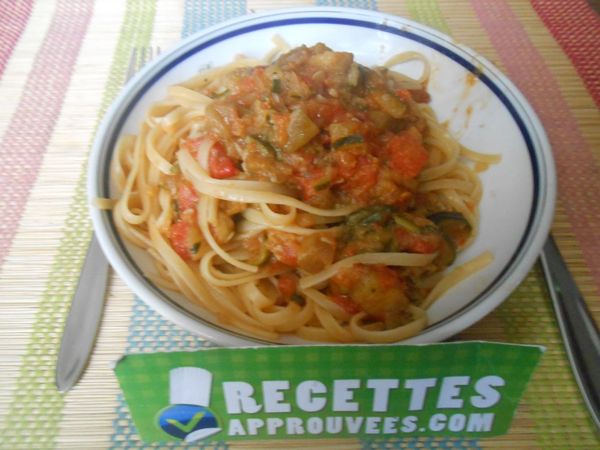 Cette sauce était vraiment bonne ! C'est vrai que c'est long à réaliser, mais comme il faut laisser mijoter, on peut faire autre chose en même temps, il faut juste prévoir un peu de temps à l'avance. Sinon le goût des légumes était là, ils étaient bien fondants, c'était parfait. Une bonne touche de soleil dans l'assiette !