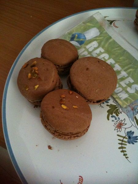 Oula, mes premiers macarons ils sont un peu grands mais je suis contente tout de même du résultat. Et ils sont très bons. À refaire, merci.