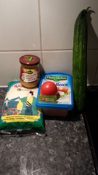 Une recette très simple, pas évident de rouler les makis car les ingrédients sortent des 2 cotés... la moutarde donne beaucoup de goût mais un peu d'ail aurait donné un peu plus de peps.