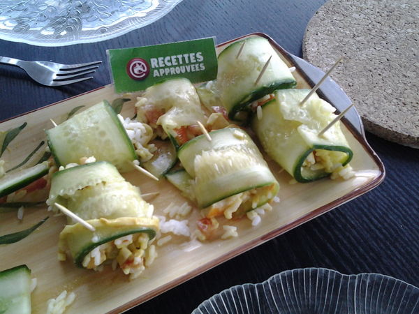 J'ai bien aimé. J'ai trouvé original de remplacer la feuille d'algue traditionnelle par une lamelle de concombre. Je n'ai pas eu de mal à former les makis, mais plutôt à faire les fines tranches de concombre. À refaire.