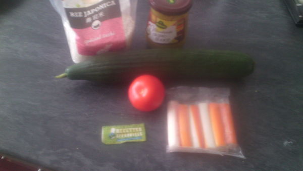 Le goût est là, l'ensemble est très bon. J'ai essayé d'en faire des plus petits en mettant moins de riz et de mélange tomate-surimi mais ça ne tient que très difficilement. C'est vraiment dommage.