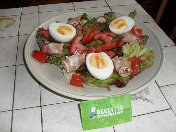 Recette de salade assez simple à faire. Nous avons aimé le jambon avec le fromage mais le reste est une recette de salade très classique. A faire pour un repas rapide.