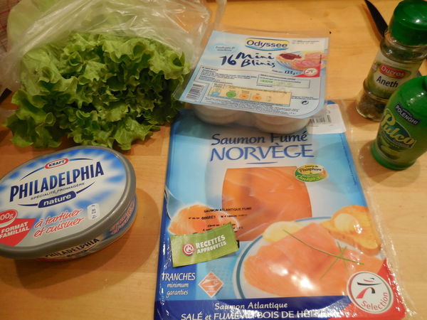 Une recette rapide et simple à faire... un bon mélange de saveur, le croquant de la salade et la douceur du saumon est agréable, et le citron et l'aneth apporte un plus à cette recette... a refaire pour un apéro improvisé...