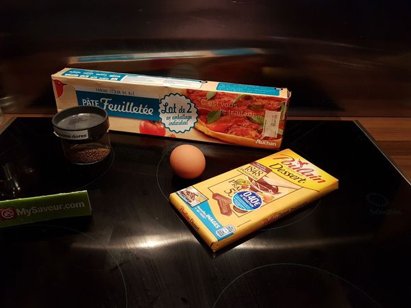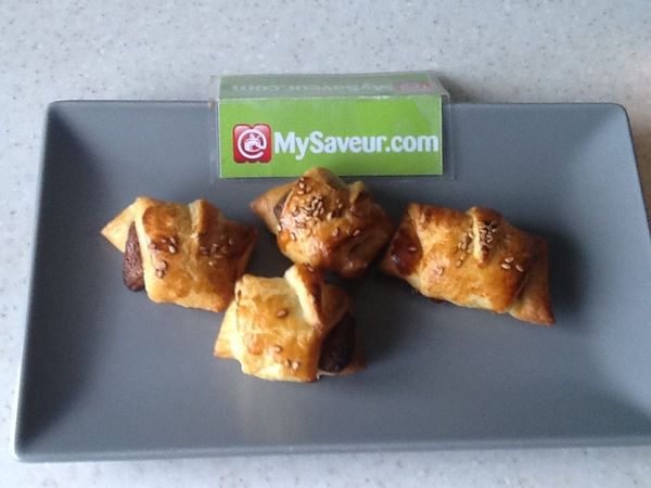 Un bon petit croissant pour le goûter, le chocolat-pralinoise fondu a beaucoup plus mais le sésame n'a pas fait l'unanimité. D'ailleurs j'ai failli oublier d'en mettre car il n'y a aucune précision à son sujet dans le déroulé de la recette.