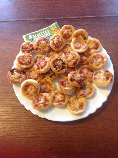 Très bonne idée ces mini pizza, j'ai ajouté un peu de farine à la pâte qui était un peu collante mais trés bonne. Découpe de la pate à l'emporte piéce et cela fait de belles petites pizza idéale pour l'apéro!!!