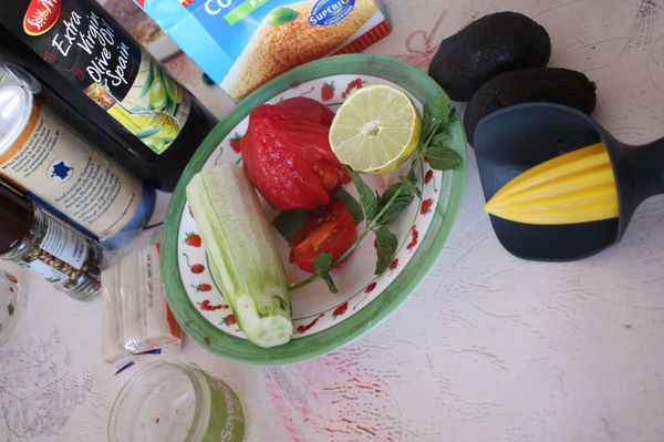 Un taboulé original avec de l'avocat, mais juste un peu trop sec, il manque un peu d'huile d'olive et de jus de citron et un peu plus d'herbes pour plus de goût.
