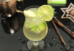 Dans votre verre à cocktail, placez quelques lamelles de gingembre et des dès de citrons verts.