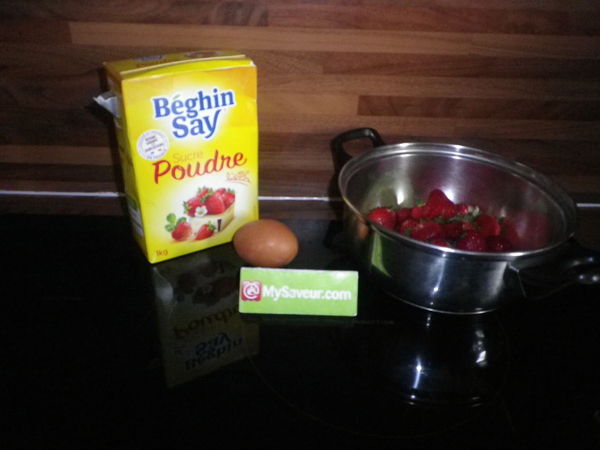 Mettre les fraises, l’œuf et le sucre dans le bol. Mixer 10 sec à vit 10.