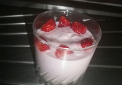 Verser dans des verrines et ajouter des fraises pour le décor.