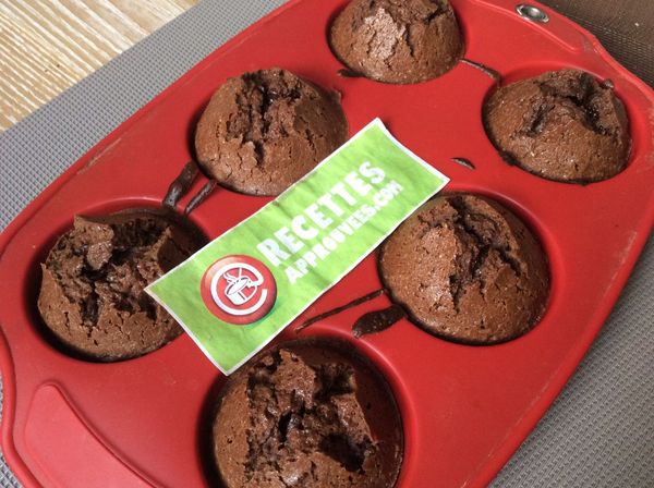 De délicieux muffins avec un très bon goût de chocolat, je n'ai pas retrouvé le goût du sel. Pour la cuisson, au bout de 15 min ce n'était pas cuit, j'ai prolongé la cuisson mais je n'aurais pas dû cela aurait était encore plus fondant.